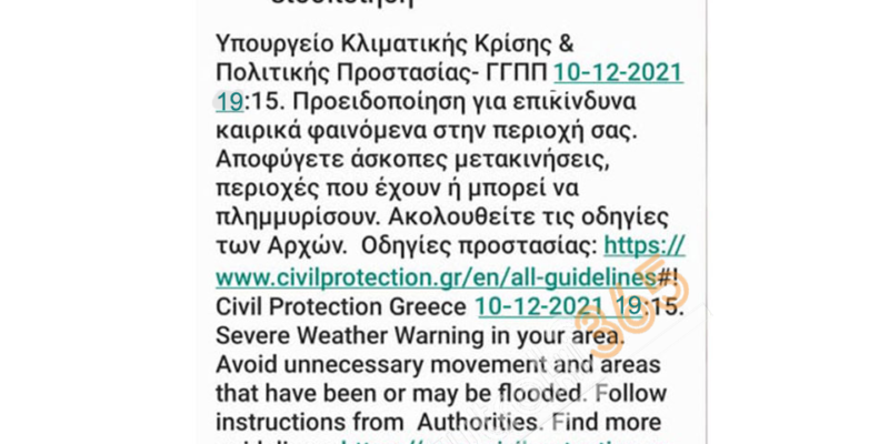 Μήνυμα από το 112 έφτασε πριν απο λίγη ώρα στα κινητά κατοίκων σε διάφορες περιοχές της Κορινθίας. Το μήνυμα στάλθηκε σε κατοίκους των δήμων Λουτρακίου – Αγίων Θεοδώρων, Κορίνθιων και Ξυλοκάστρου Ευρωστίνης με την προειδοποίηση ότι αναμένονται έντονα καιρικά φαινόμενα στο πλαίσιο της κακοκαιρίας, τόσο στην διάρκεια της νύχτας (ξημερώματα Σαββάτου), όσο και όλο το Σάββατο.