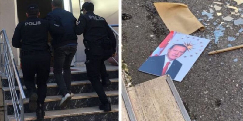 Όπως αναφέρει η ίδια πηγή, ο αγανακτισμένος πολίτης πήγε στο γραφείο της επαρχίας Έρεγλι και στην είσοδο του κτιρίου έβρισε μπροστά από μια φωτογραφία του Ρετζέπ Ταγίπ Ερντογάν και στη συνέχεια την πέταξε κάτω.