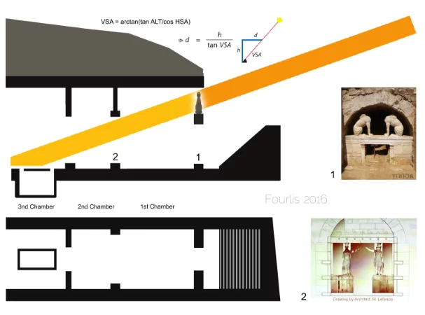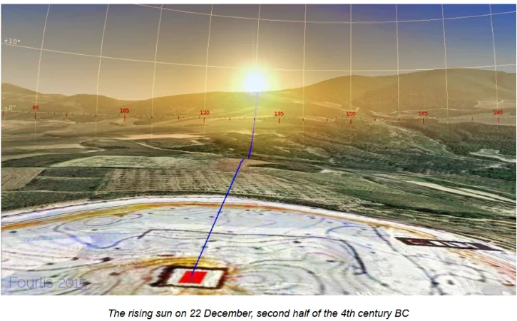 Σύμφωνα με τη μελέτη ιδιώτη ερευνητή αρχαιοαστρονομίας, που επαληθεύεται και από την ανασκαφική ομάδα του Τύμβου, το μνημείο είχε κατασκευαστεί με έναν πολύ συγκεκριμένο τρόπο και προσανατολισμό, ώστε τις ημέρες του χειμερινού ηλιοστασίου -και μόνον αυτές- το φως του ηλίου να εισέρχεται μέσα στον τύμβο και να «λούζει» ολόκληρο το μνημείο, μέχρι και την τελευταία αίθουσα!