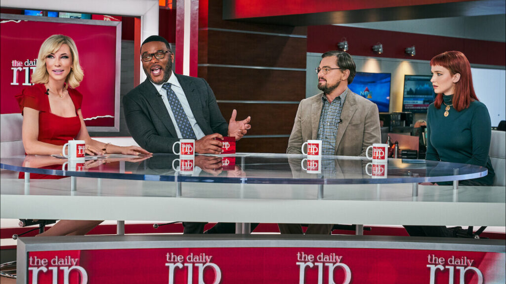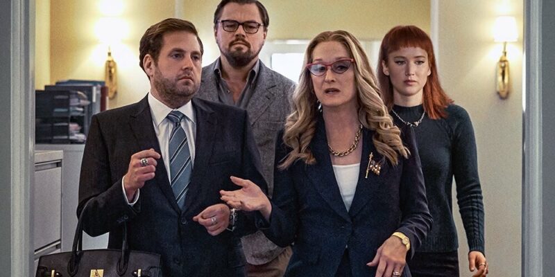 «Μην Κοιτάτε Πάνω» βαφτίζεται η κυβερνητική καμπάνια. Αυτή ακριβώς η (εκατέρωθεν) απόσπαση προσοχής είναι το θέμα της πιο αστείας ταινίας της χρονιάς.