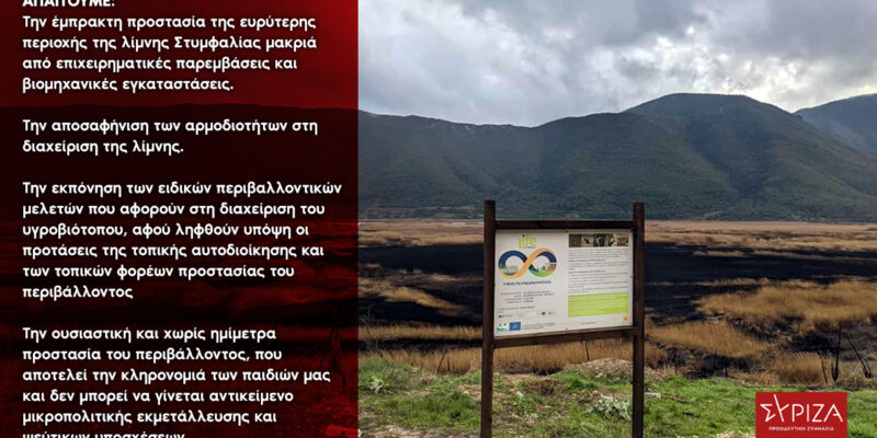 Συνεπώς, για να προστατευτεί ο υγροβιότοπος της λίμνης Στυμφαλίας, απαιτούμε: