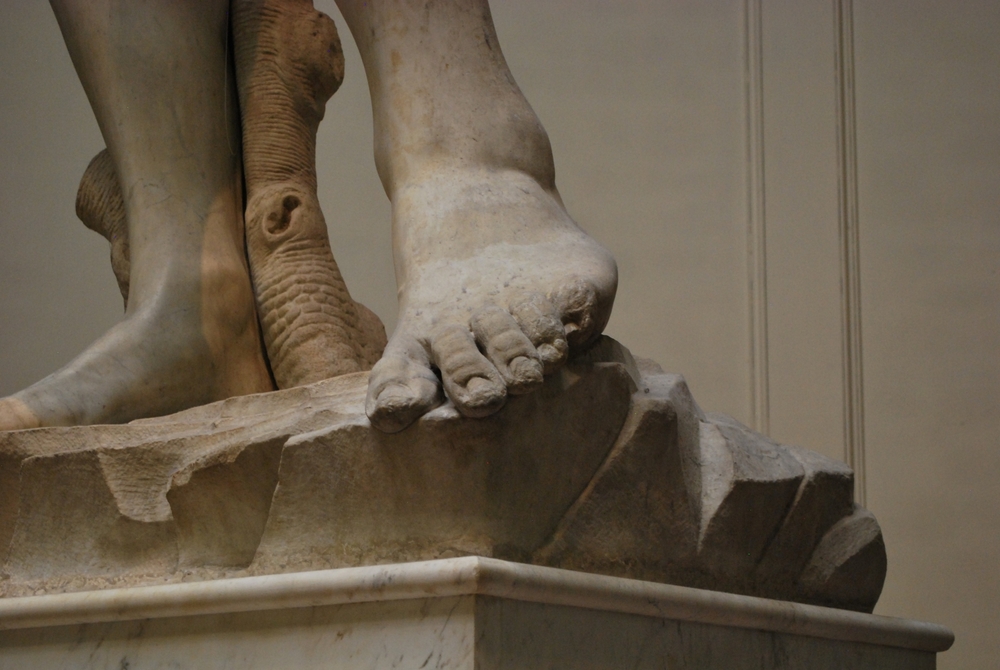 Η μελέτη των θραυσμάτων ήταν αυτή που αποκάλυψε στους επιστήμονες ότι το μάρμαρο είναι γεμάτο μικροσκοπικές τρύπες που προκαλούν τη γρηγορότερη αποσύνθεσή του. Αυτό όμως είναι το μικρότερο πρόβλημα που αντιμετωπίζει το σύμβολο της Φλωρεντίας, καθώς οι αστράγαλοι του γίγαντα είναι ραγισμένοι.