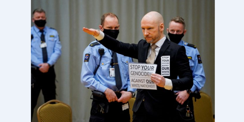 Ο ακροδεξιός εξτρεμιστής σκότωσε 77 ανθρώπους στη χειρότερη θηριωδία που έχει γίνει στη Νορβηγία σε καιρό ειρήνης τον Ιούλιο του 2011. Σκότωσε οκτώ άτομα με βόμβα σε αυτοκίνητο στο Όσλο και στη συνέχεια σκότωσε άλλους 69 ανθρώπους, οι περισσότεροι από τα οποίους ήταν έφηβοι, σε στρατόπεδο νεολαίας του Εργατικού Κόμματος.