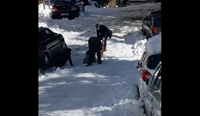 Μαρτυρίες για τη συγκλονιστική μάχη να μεταφερθεί φέρετρο στον γεμάτο χιόνι δρόμο στου Ζωγράφου. Αυτόπτες μάρτυρες περιγράφουν όσα είδαν και εκφράζουν την οργή τους.Αβοήθητοι δηλώνουν πως βρίσκονται οι κάτοικοι στην περιοχή του Ζωγράφου στην Αττική, όπου οι περισσότεροι δρόμοι είναι ακόμη καλυμμένοι από χιόνι και πάγο και η κυκλοφορία των οχημάτων -όπου γίνεται- πραγματοποιείται με μεγάλη δυσκολία.Χαρακτηριστικό της κατάστασης είναι το βίντεο που κάνει σήμερα τον γύρο των social media και φαίνεται η σοκαριστική εικόνα, όπου τρία άτομα «παλεύουν» να μεταφέρουν με τα χέρια τους και στον πάγο φέρετρο με νεκρό.Αυτόπτης μάρτυρας του συμβάντος στη Λεωφόρο Κουσίδη και Πλαστήρα, δηλώνει στο Sputnik πως οι άνθρωποι -μεταξύ των οποίων φαίνεται πως ήταν και συγγενής του νεκρού- «υποχρεώθηκαν να κουβαλήσουν τον νεκρό μέχρι εκεί που τελείωνε ο πάγος και έπειτα τον παρέλαβε νεκροφόρα», ενώ όπως φαίνεται το θύμα πέθανε σε πολυκατοικία.
