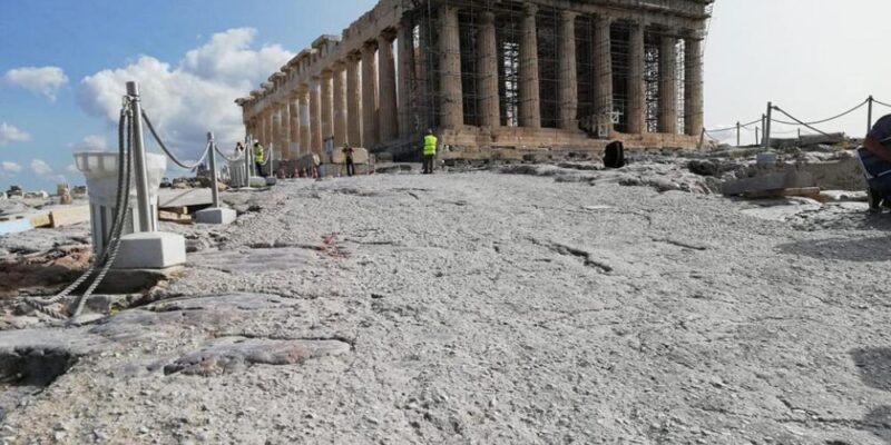 Όπως αναφέρεται στο άρθρο, «κατά τη διάρκεια του δεύτερου lockdown της Ελλάδας και συγκεκριμένα τον Οκτώβριο του 2020, οι οικοδόμοι έφτιαξαν φαρδιά τσιμεντένια μονοπάτια γύρω από την Ακρόπολη. Οι αρμόδιοι για το έργο τόνισαν πως τα μονοπάτια βελτιώνουν την προσβασιμότητα στο ιστορικό αξιοθέατο. Οι επικριτές είπαν ότι προκαλούν πλημμύρες. Ένας ακαδημαϊκός κατηγόρησε τη διοίκηση του χώρου ότι χρησιμοποιεί το λουκέτο ως «προπέτασμα καπνού».