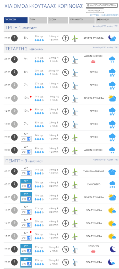 Μετά την μικρή διήμερη ανάσα με την ηλιοφάνεια, βροχερός θα είναι αύριο ο καιρός σε όλη σχεδόν την Κορινθία, με χιονοπτώσεις σε ορεινές και ημιορεινές περιοχές, αλλά και πτώση της θερμοκρασίας.