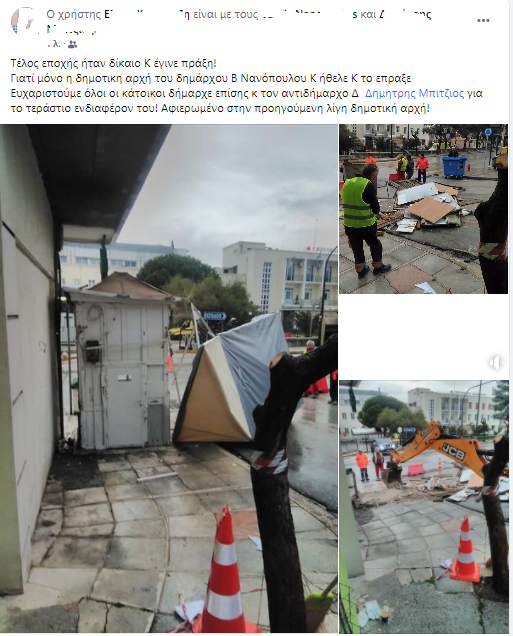 Σήμερα το πρωί πάντως, συνεργεία του δήμου προχώρησαν στην αποξήλωση του περιπτέρου που ήταν και πάγιο αίτημα των κατοίκων της περιοχής, όπως φαίνεται και από σχόλια στα social media