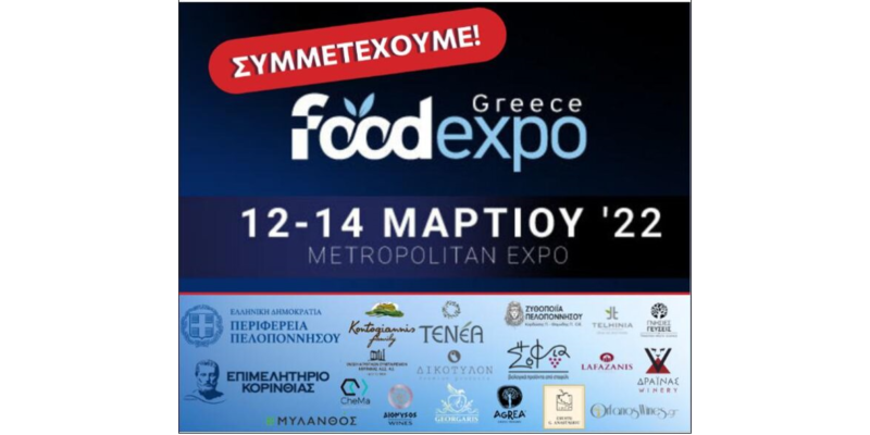 Το Επιμελητήριο Κορινθίας συμμετέχει δυναμικά στην Food Expo – Greece 2022 που διεξάγεται από σήμερα και μέχρι την Δευτέρα 14 Μαρτίου στο Metropolitan Expo. Με 17 εκθέτες στο Περίπτερο της Περιφέρεια Πελοποννήσου αλλά και με την συμμετοχή άλλων τόσων Κορινθιακών επιχειρήσεων σε αυτόνομα περίπτερα. Θα είμαστε εκεί να στηρίξουμε τις επιχειρήσεις του νομού μας, αναφέρει το Επιμελητήριο και κάνει γνωστές μέσω του F τις κορινθιακές επιχειρήσεις που συμμετέχουν και είναι οι εξής: