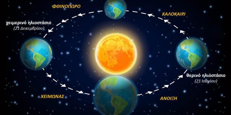 Οι ισημερίες – η εαρινή και η φθινοπωρινή – καθορίζουν την έναρξη της άνοιξης και του φθινοπώρου, ενώ τα ηλιοστάσια -το θερινό και το χειμερινό- προσδιορίζουν την έναρξη του καλοκαιριού και του χειμώνα αντίστοιχα.