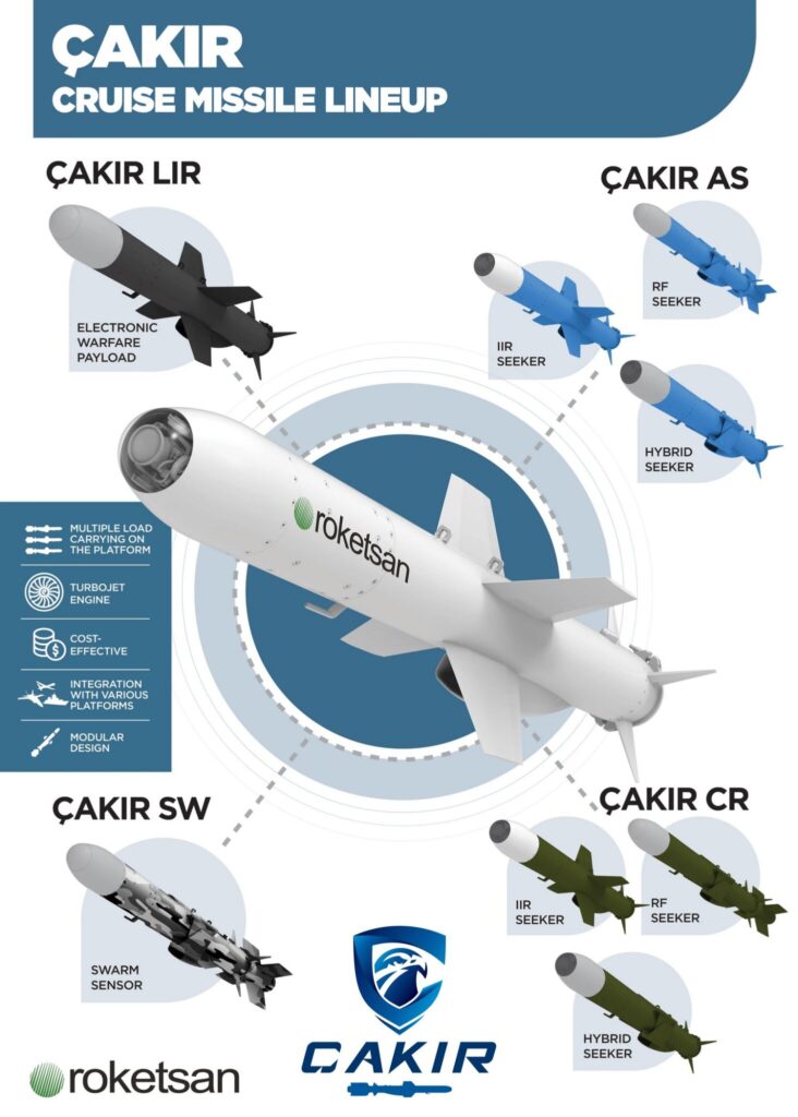 Μετά τον αντιπλοϊκός ATMACA, η τουρκική Roketsan παρουσίασε σήμερα τον CAKIR ένα πύραυλο cruise μέσου βεληνεκούς, 100-150 χιλιόμετρα ανάλογα την πλατφόρμα εξαπόλυσης. Ο CAKIR προβάλλεται ως «παρόμοιος σε λειτουργία με τον Penguin» και είναι οικογένεια όπλων, καθώς θα προσφερθεί σε πολλές παραλλαγές, με κεφαλή ανίχνευσης υπερύθρων, ή ραδιοσυχνοτήτων, ή μικτή, ενώ θα εξαπολύεται από όλες τις πλατφόρμες, δηλαδή πλοία, αεροσκάφη (και μη επανδρωμένα) και επίγειους εκτοξευτές.