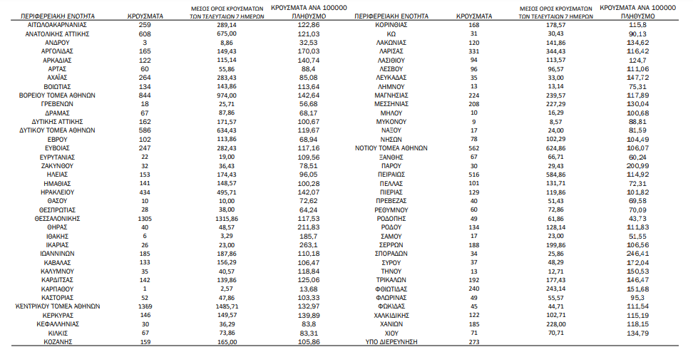 Τα νέα εργαστηριακά επιβεβαιωμένα κρούσματα της νόσου (άτομα) που καταγράφηκαν τις τελευταίες 24 ώρες ήταν 12.518. Ο συνολικός αριθμός των ατόμων που νόσησαν ανέρχεται σε 3.164.995.