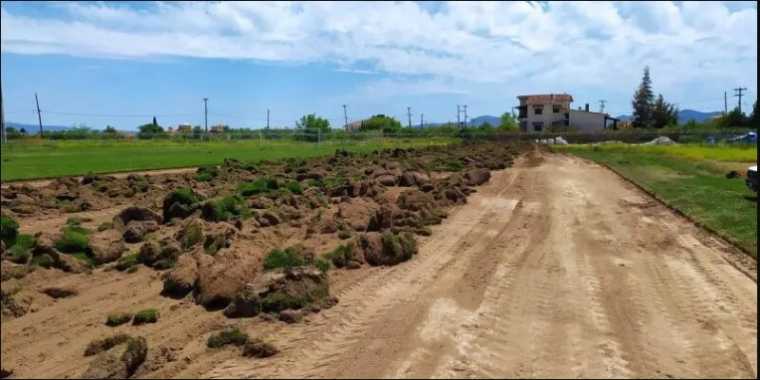 Ήδη ξηλώνεται ο παλιός χλοοτάπητας και πραγματοποιούνται εργασίες διαμόρφωσης του εδάφους για να υποδεχθεί τόσο τον νέο χλοοτάπητα όσο και την επίστρωση ταρτάν, αλλά και τις απαραίτητες αρδευτικές και αποστραγγιστικές εγκαταστάσεις.