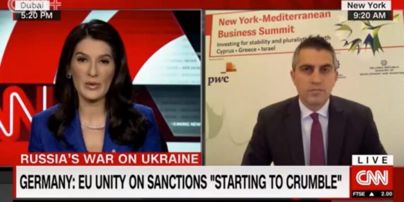 Στη Νέα Υόρκη, όπου συμμετέχει στο διεθνές συνέδριο του The Economist, βρίσκεται αυτές τις μέρες ο υφυπουργός Ανάπτυξης και Επενδύσεων και βουλευτής Κορινθίας Χρίστος Δήμας. Στο περιθώριο του συνεδρίου, ο κ. Δήμας μίλησε στο δελτίο ειδήσεων του CNN και την ελληνοαμερικανίδα δημοσιογράφο Ελένη Γκιόκος για τις πρόσφατες παγκόσμιες εξελίξεις, την σύνοδο κορυφής της ΕΕ για τον πόλεμο στην Ουκρανία και την ενεργειακή κρίση, τις επενδυτικές προοπτικές της χώρας και για τα Ελληνοτουρκικά.