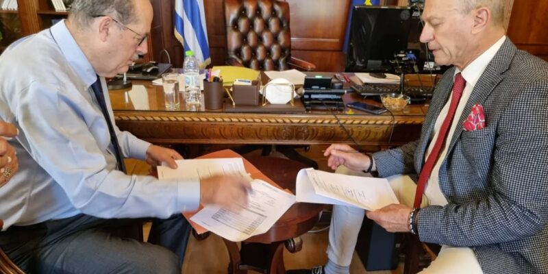 Προγραμματική σύμβαση μεταξύ της Περιφέρειας Πελοποννήσου, του Περιφερειακού Ταμείου Ανάπτυξης και του Δήμου Λουτρακίου – Περαχώρας – Αγίων Θεοδώρων, με αντικείμενο την υλοποίηση του “έργου βελτίωσης και συντήρησης της επαρχιακής οδού Λουτρακίου – Περαχώρας”, στο πλαίσιο του οποίου θα κατασκευαστούν -μεταξύ άλλων- δύο ισόπεδοι κυκλικοί κόμβοι, υπέγραψαν ο Δήμαρχος Λουτρακίου – Περαχώρας – Αγίων Θεοδώρων Γεώργιος Αλκ. Γκιώνης και ο Περιφερειάρχης Πελοποννήσου Παναγιώτης Νίκας, την Τετάρτη 1η Ιουνίου 2022, στα γραφεία της Π.Ε. Κορινθίας.