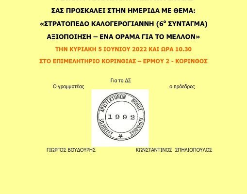 Θυμίζουμε ότι μόλις πριν από μερικές ημέρες και συγκεκριμένα στις 12 Μαΐου, ο Σύλλογος είχε καταθέσει γραπτό υπόμνημα προς τον δήμαρχο και το δημοτικό συμβούλιο της Κορίνθου, όπου εξηγούσε γιατί η πολεοδόμηση, όπως την προτείνει η δημοτική αρχή και υπερψήφισε η πλειοψηφία του δημοτικού συμβουλίου, είναι σε λάθος κατεύθυνση. Καταδεικνύει μάλιστα και νομικά ζητήματα, τα οποία θα οδηγήσουν στην κατάπτωση του ΓΠΣ.