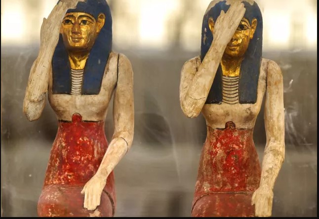 «Βρήκαμε δύο όμορφα ξύλινα αγάλματα με χρυσά πρόσωπα των θεοτήτων Ίσιδος και Νέφθυδος σε μια σαρκοφάγο, που ονομάζονται προστάτιδες της σαρκοφάγου», είπε ο Μοχάμεντ Αλ Σάιντι για τα τεχνουργήματα που ανασύρθηκαν από ένα από τα φρεάτια εκσκαφής στο νεκροταφείο.