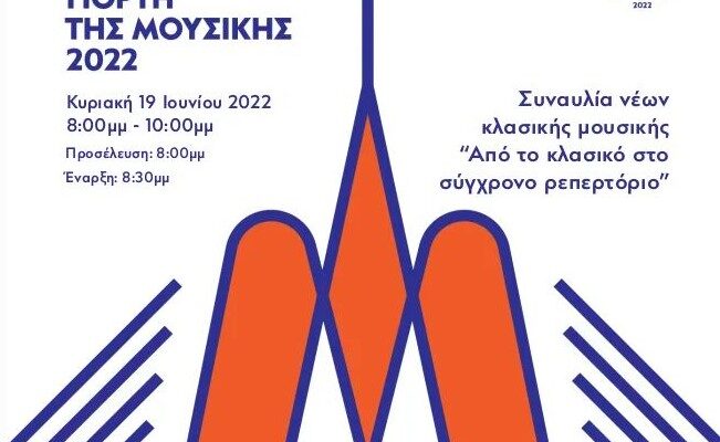 Η κεντρική εκδήλωση της Ευρωπαϊκής Γιορτή της Μουσικής 2022, με την οποία θα ανοίξει η αυλαία της φετινής διοργάνωσης, είναι αφιερωμένη στην καλλιέργεια της κλασικής μουσικής παιδείας και απόλαυσης στα παιδιά και τους νέους! Με θέμα “Συναυλία νέων κλασικής μουσικής: “Από το κλασικό στο Σύγχρονο ρεπερτόριο” θα παρουσιαστούν η Μαθητική Ορχήστρα του Καλογεροπούλειου Ωδείου και σπουδαστές του Δημοτικού Ωδείου Ευρωστίνης.