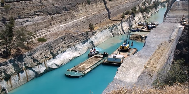 Αφού η Διώρυγα της Κορίνθου παρέμενε κλειστή από τις αρχές του 2021, λόγω της μεγάλης κατακρήμνισης χωμάτων στο πρανές της Πελοποννήσου, πλησιάζει η ώρα που θα επαναλειτουργήσει. Ο καθαρισμός γίνεται ταυτόχρονα κι’ από τις δυο πλευρές με δύο συνεργεία.