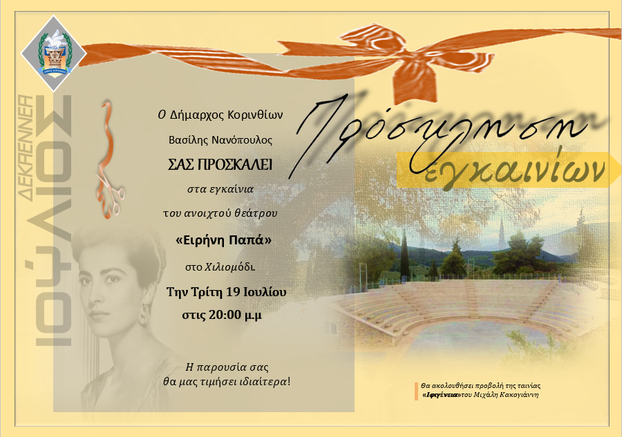 ΕΚΔΗΛΩΣΕΙΣ Την Τρίτη τα εγκαίνια του ανοιχτού θεάτρου ¨Ειρήνη Παπά¨ του Δ. Κορινθίων στο Χιλιομόδι By KORINTHIANET 18/July/2022 ShareTweet 0