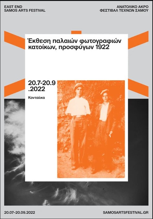 Στις 3/8 στην Υδρούσσα (πλατεία Αγίου Χαραλάμπους), στο πλαίσιο του Συνεδρίου και του Φεστιβάλ Τεχνών Σάμου, θα πραγματοποιηθεί δημόσια ομιλία με τίτλο «Το 1922 και οι προεκτάσεις του». Συμμετέχουν οι Γιώργος Γιαννακόπουλος (City University of London/King’s College), Κωνσταντίνος Τσιτσελίκης (Πανεπιστήμιο Μακεδονίας), Νίκος Σιγάλας (EHESS Παρίσι), Ποθητή Χατζαρούλα (Πανεπιστήμιο Αιγαίου), Γιώργος Μπιθυμήτρης (ΕΚΚΕ) και Αθηνά Σκουλαρίκη (Πανεπιστήμιο Κρήτης). Ώρα έναρξης 20:00. Στα αξιοθέατα και η έκθεση φωτογραφίας με τίτλο «Παλιές φωτογραφίες κατοίκων Μικρασιατών προσφύγων» στα Κονταίικα που θα διαρκέσει έως τις 20/9 (www.samosartsfestival.gr)