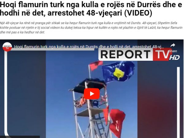 Την τουρκική σημαία που είχε ανυψωθεί σε πυργίσκο ναυαγοσωστών στο Δυρράχιο της Αλβανίας κατέβασε και πέταξε στη θάλασσα αλβανός παραθεριστής.