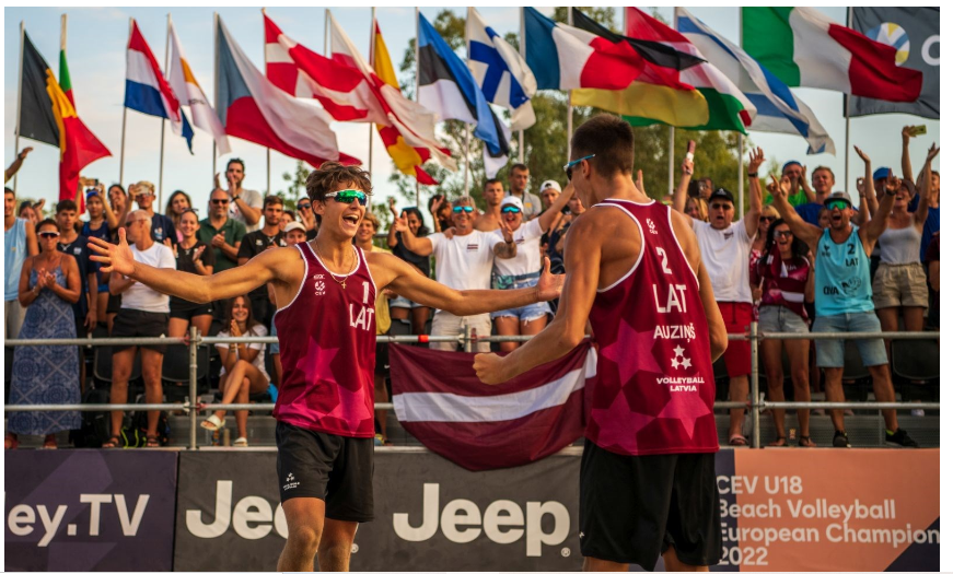 Στα αγόρια το δίδυμο από τη Λετονία κατέκτησε το χρυσό μετάλλιο στο Ευρωπαϊκό πρωτάθλημα μπιτς βόλεϊ Κ18 που ολοκληρώθηκε το απόγευμα της Κυριακής (4/9) στο Λουτράκι, χωρίς να χάσει σετ καθόλη τη διάρκεια της διοργάνωσης.