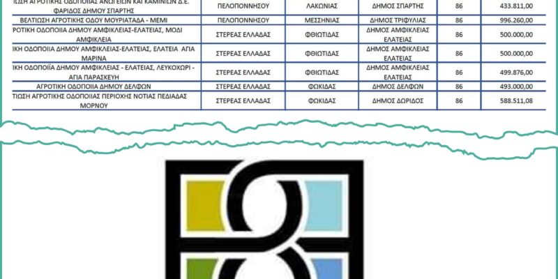 Σύμφωνα με τα στοιχεία του πίνακα εντάσσονται στο πρόγραμμα 208 προτάσεις, μία εκ των οποίων είναι και του Δήμου Βέλου Βόχας.
