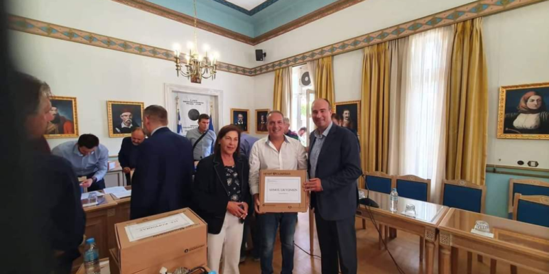 Από την Π.Ε. Κορινθίας παρέλαβαν οι Αντιπεριφερειάρχες κα Αθηνά Κόρκα και Αναστάσιος Γκιολή για το Διοικητήριο.