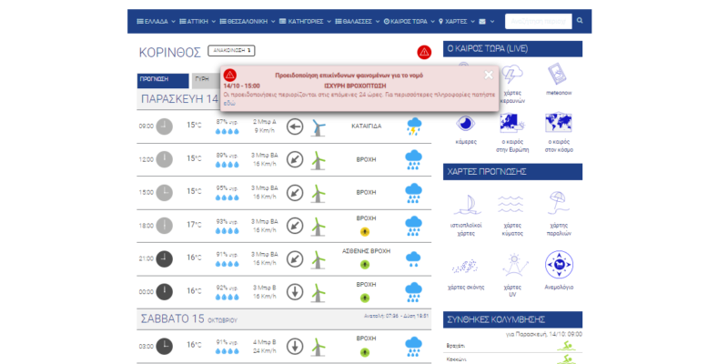 Χρειάστηκε να φτάσουμε στις 14 Οκτωβρίου για να δουμε την πρώτη φθινοπωρινή σταγόνα βροχής στην Κόρινθο. Από τα ξημερώματα ένα ελαφρύ ψιλόβροχο δροσίζει και ποτίζει για τα καλά την πόλη, αλλά και ευρύτερα την περιοχή, με την ΕΜΥ ωστόσο να ενημερώνει ότι μπορεί να εκδηλωθούν και ισχυρές βροχπτώσεις. Ο βροχερός καιρός θα παραμείνει όλη την ημέρα, αλλά και αύριο μέχρι το απόγευμα. Αντίθετα θα αρχίσει να βελτιώνεται και πάλι από την Κυριακή.