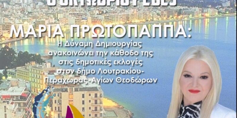 Δημόσια παρέμβαση στην κατεύθυνση της συνένωσης των δυνάμεων της αντιπολίτευσης του δήμου Λουτρακίου και Αγίων Θεοδώρων έκανε χτες η Μαρία Πρωτοπαππά. Με ανακοίνωσή της η επικεφαλής της παράταξης Δύναμη Δημιουργίας κάλεσε τις άλλες παρατάξεις “σε συμπόρευση για την ανατροπή που έχει ανάγκη ο τόπος μας…”.