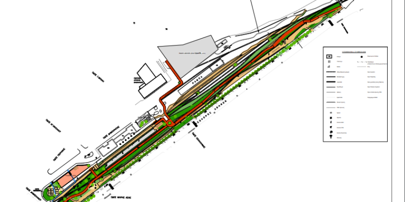 · Αποξήλωση των υφιστάμενων πλακών πεζοδρομίων και αντικατάσταση με νέες, μπροστά από το κτίριο του ΟΣΕ.