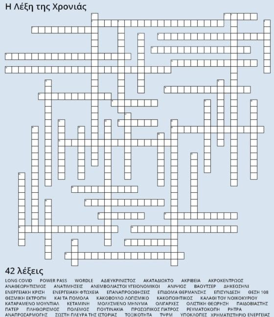 Σκέφτηκε λοιπόν, με τη βοήθεια του eclipsecrossword, να σκαρώσει ένα σταυρόλεξο, με λύσεις τις 42 λέξεις που συμμετέχουν στην υπό εξέλιξη ψηφοφορία.