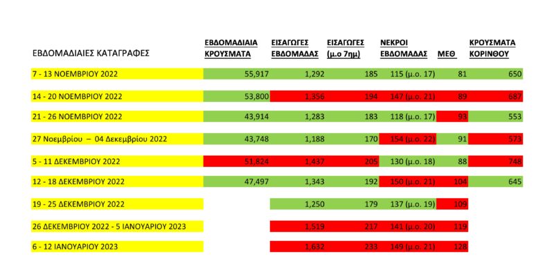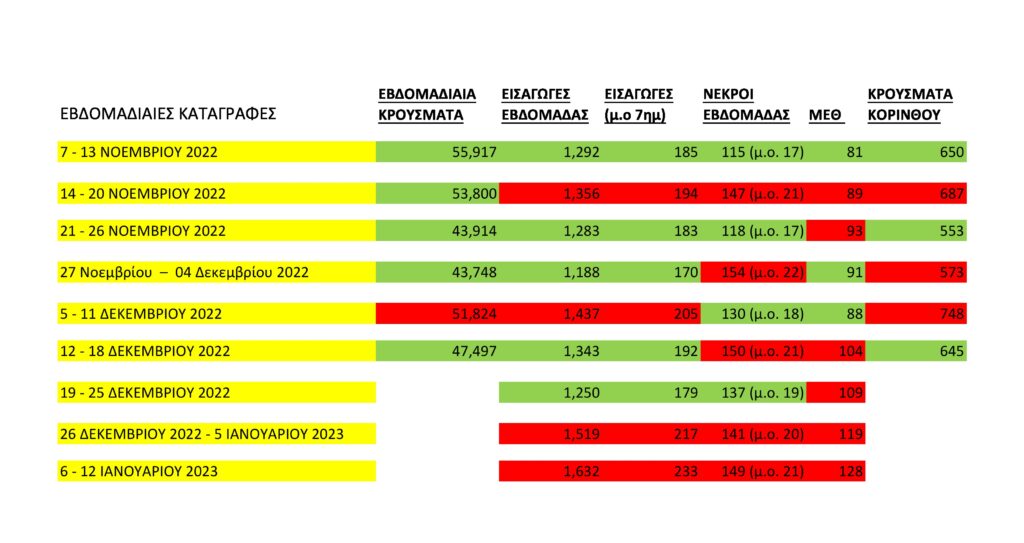 αφορούσαν νοσηλευόμενους σε ΜΕΘ και 2 νέοι θάνατοι την εβδομάδα 01/2023