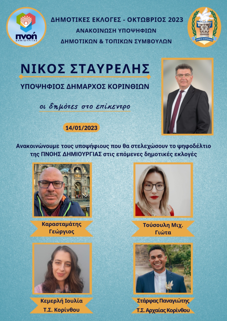 Ο Γιώργος θα είναι υποψήφιος δημοτικός σύμβουλος στη Δ.Ε. Κορινθίων.