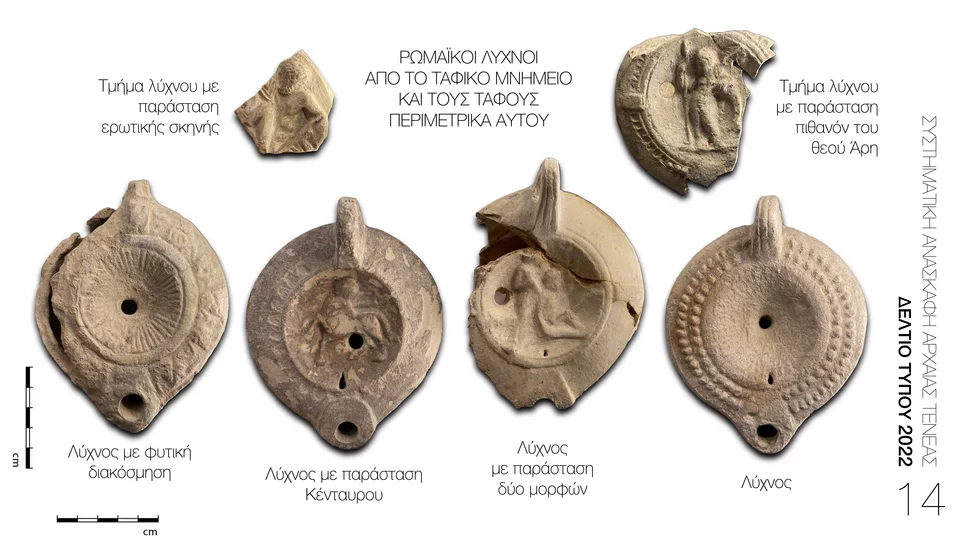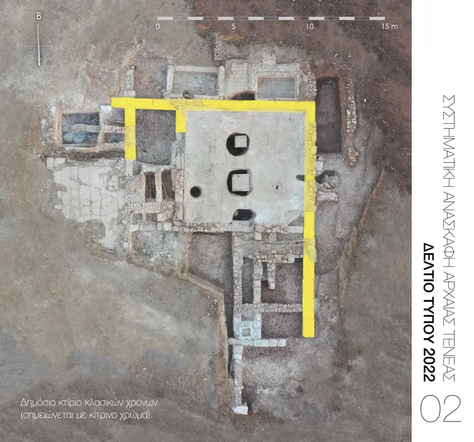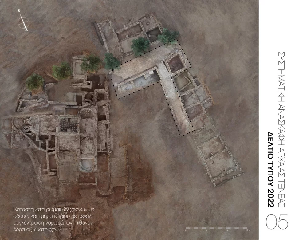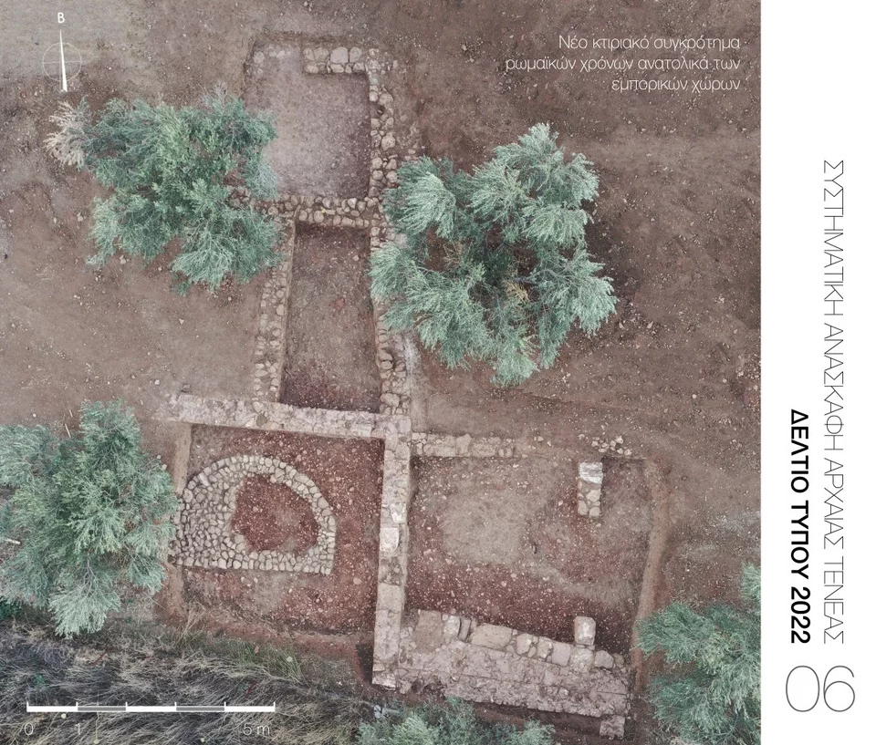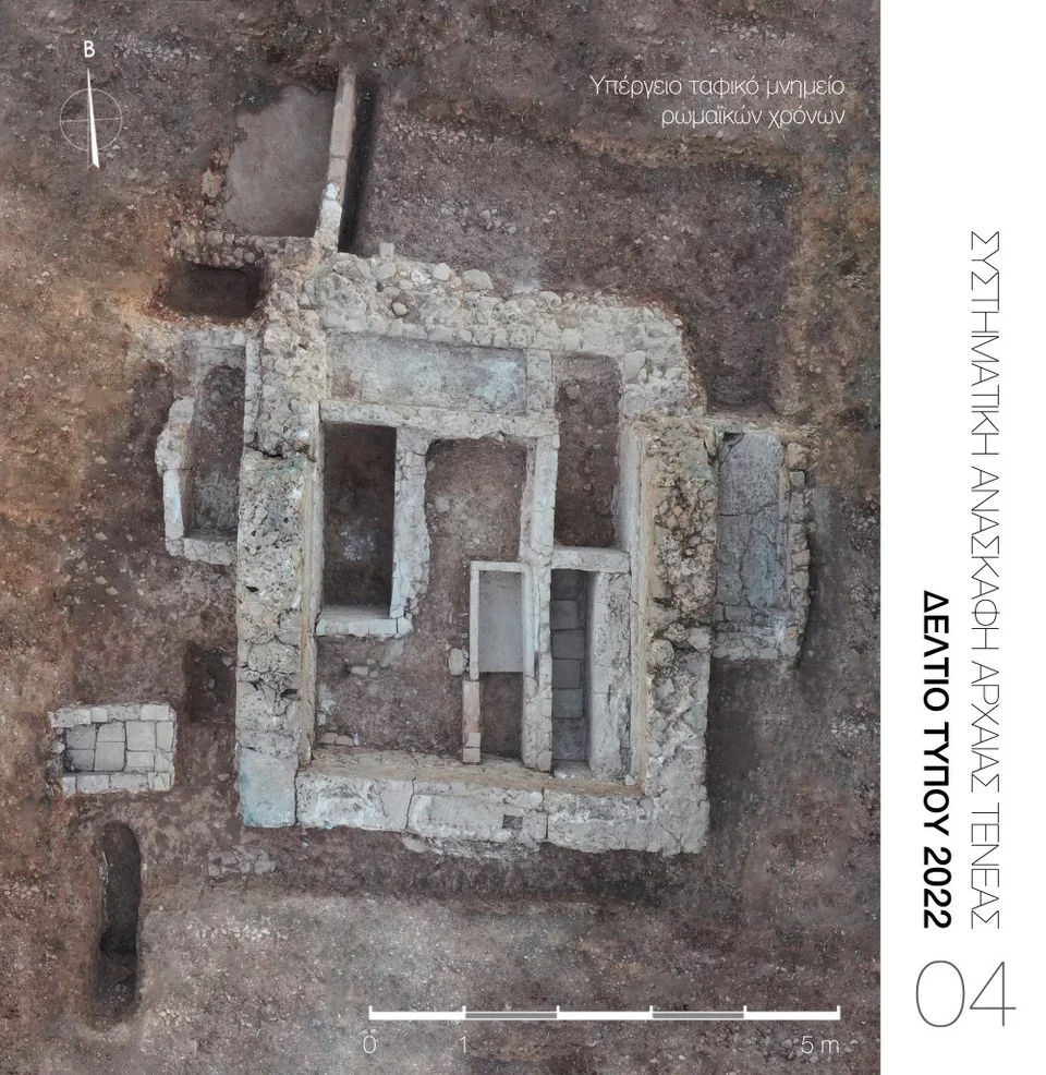 Επιπλέον, ήρθε στο φως δεύτερο υπέργειο ταφικό μνημείο (Εικ. 4) που καταδεικνύει, σε συνδυασμό με το πρώτο που εντοπίστηκε το 2016, την οικονομική ευρωστία και ακμή της ρωμαϊκής Τενέας.