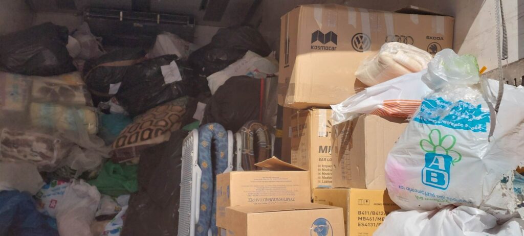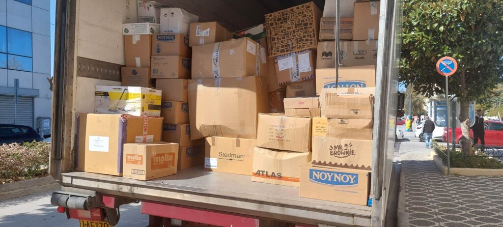 Σήμερα το πρωί τα δέματα φορτώθηκαν σε ένα μεγάλο φορτηγό της εταιρίας Παπαγιαννόπουλος την οποίαν ευχαριστούμε ιδιαιτέρως για την προσφορά της μεταφοράς τους και θα μεταφερθούν στα σημεία διανομής ώστε να φτάσουμε με ασφάλεια και αρτιότητα στους ανθρώπους που τα έχουν ανάγκη.