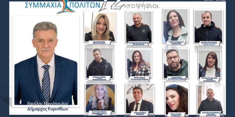 Διευρύνεται και ισχυροποιείται  η «ΣΥΜΜΑΧΙΑ ΠΟΛΙΤΩΝ» του δημάρχου Κορινθίων Βασίλη Νανόπουλου και αγκαλιάζει το σύνολο της κοινωνίας, κάθε ενεργό πολίτη που επιθυμεί να είμαι συμμέτοχος στην μεγάλη αλλαγή που ξεκίνησε το 2019 , πραγματώνεται τα 3,5 αυτά χρόνια και θα συνεχιστεί με την βούληση και την εμπιστοσύνη των Κορινθίων και στην επόμενη θητεία”, αναφέρεται στην ανακοίνωση της παράταξης.