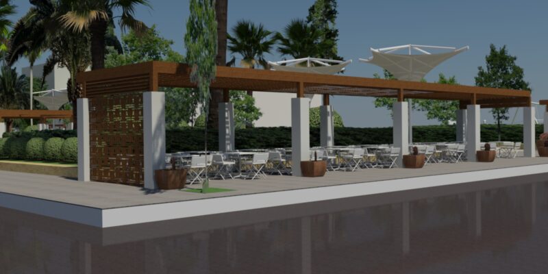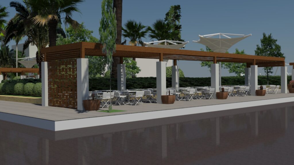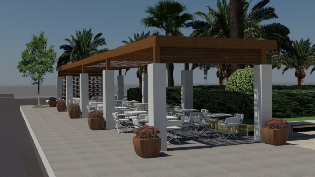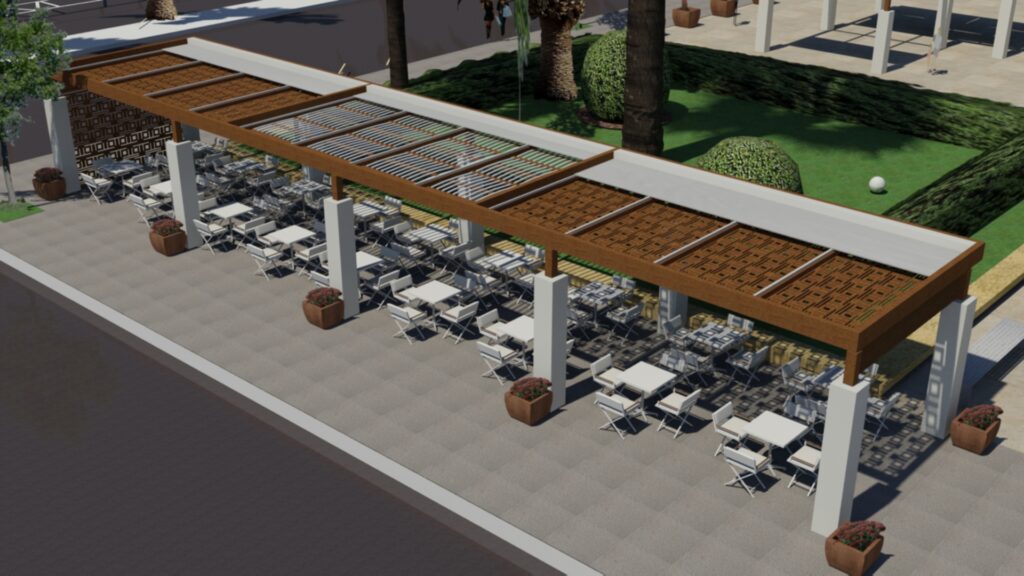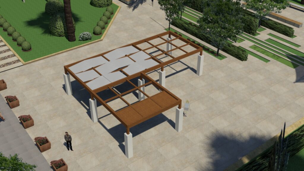 Φωτορεαλστική απεικόνιση των περγκολών που σχεδίασε η Τεχνική Υπηρεσία του Δήμου Κορινθίων και ενέκρινε το Συμβούλιο Αρχιτεκτονικής νομού Κορινθίας έστειλε στα Μέσα Ενημέρωσης ο αντιδήμαρχος Τεχνικών Υπηρεσιών, Γιώργος Πουρος.