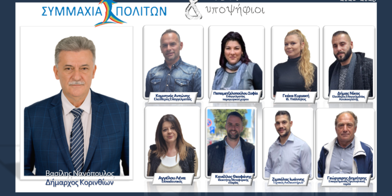 Οκτώ νέες υποψηφιότητες ανακοίνωσε ο Βασίλης Νανόπουλος. Όπως αναφέρει δελτίο Τύπου που εκδόθηκε από την παράταξή του, “με ταχείς ρυθμούς συνεχίζεται η στελέχωση, η ανανέωση και η διεύρυνση  του συνδυασμού του Δημάρχου Κορινθίων Βασίλη ΝανόπουλουΟι  υποψήφιοι που ανακοινώνονται σήμερα θέτουν για πρώτη φορά εαυτόν στα κοινά αναγνωρίζοντας στην δημοτική αρχή και στον δήμαρχο Βασίλη Νανόπουλο το όραμα, την προοπτική, το αποτέλεσμα που δεσμεύτηκε στους πολίτες το 2019.