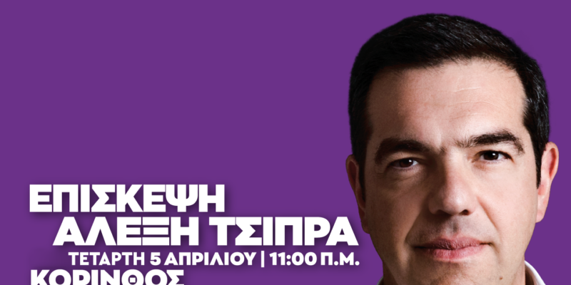 Επίσημα επιβεβαιώθηκε το μεσημέρι από τον ΣΥΡΙΖΑ – ΠΣ Κορινθίας η έλευση του Αλέξη Τσίπρα στην Κόρινθο, αύριο (Τετάρτη) το πρωί, (στις 11.00). Ο αρχηγός της αξιωματικής αντιπολίτευσης θα μετακινηθεί στο κέντρο της πόλης, όπου θα έχει επαφή με πολίτες στον πεζόδρομο, θα επισκεφτεί καταστήματα και επιχειρήσεις, ενώ θα κάνει και μία μικρή ομιλία, πιθανότατα μπροστά στην πινακοθήκη.