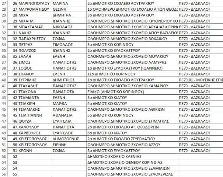 ΔΕΙΤΕ ΟΛΑ ΤΑ ΟΝΟΜΑΤΑ ΚΑΙ ΤΑ ΣΧΟΛΕΙΑ ΤΟΠΟΘΕΤΗΣΗΣ