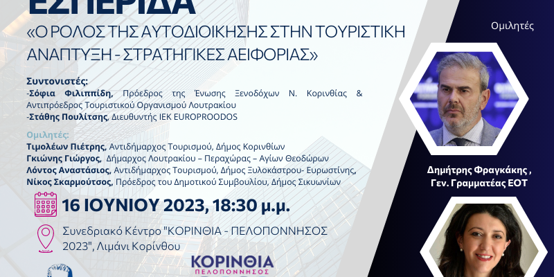 Ελάτε να εξερευνήσουμε το ρόλο της τοπικής αυτοδιοίκησης στην τουριστική ανάπτυξη και τις επιχειρησιακές στρατηγικές αειφορίας στην Κορινθία!“, μας καλεί το Επιμελητήριο.