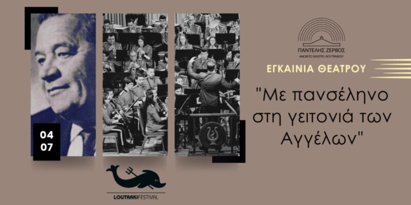 Την Τρίτη 4 Ιουλίου 2023 η Φιλαρμονική Ορχήστρα Λουτρακίου συναντά μία πλειάδα καλλιτεχνών από το Λουτράκι για να ενώσουν φωνές και μουσικές σε μία μοναδική συναυλία αφιερωμένη στη μνήμη του μεγάλου μας ηθοποιού Παντελή Ζερβού με αφορμή τα εγκαίνια του Νέου θεάτρου στο Πάρκο Δεξαμενής!
