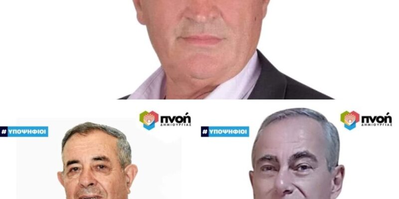 Ανακοινώνουμε τρεις ακόμα υποψήφιους που θα στελεχώσουν την ΠΝΟΗ ΔΗΜΙΟΥΡΓΙΑΣ και το ψηφοδέλτιο στις επόμενες δημοτικές εκλογές.