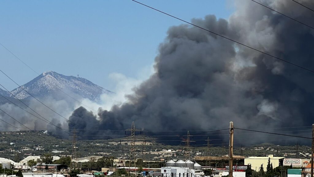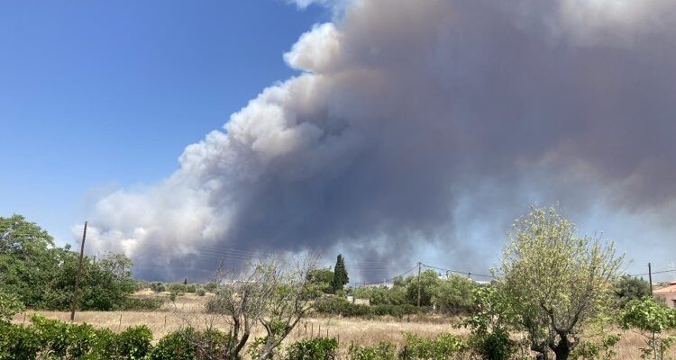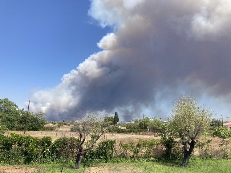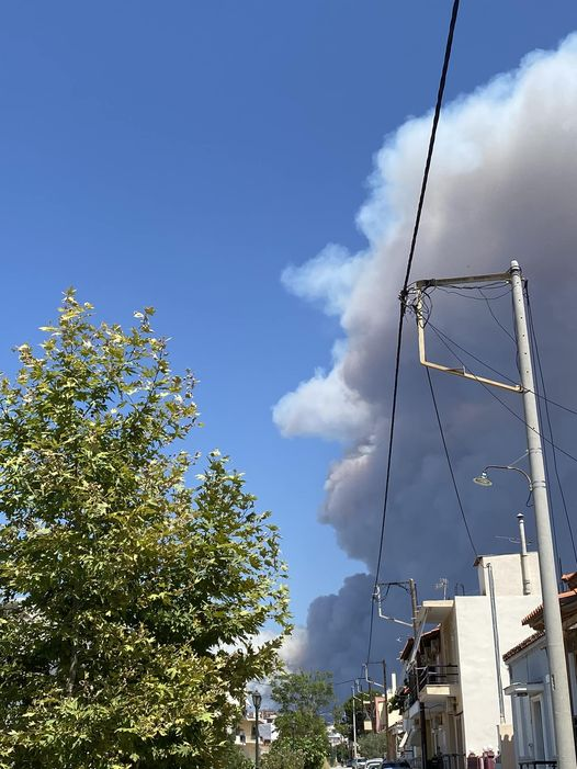 Οι καπνοί έχουν πνίξει την περιοχή και είναι τόσο έντονοι που σχεδόν κρύβουν τον ήλιο.