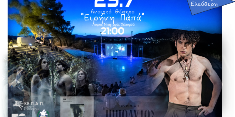 Με την παράσταση «Ιππόλυτος» το Εθνικό Θέατρο έρχεται για 2η φορά στο ανοιχτό θέατρο «Ειρήνη Παπά», το Σάββατο 29 Ιουλίου 2023, μια παράσταση η οποία, με φροντίδα του δήμου Κορινθίων και του ΚΕΠΑΠ, είναι δωρεάν για το κοινό.