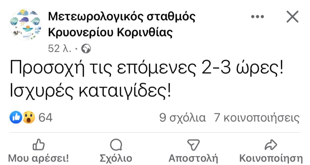 Η ΕΜΥ έχει βγάλει απο το πρωί πρόγνωση επικίνδυνων καιρικών φαινομένων, σε όλο το νομό, με καταιγίδες και δυνατούς ανέμους.