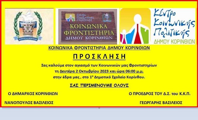 Ανοίγει σήμερα η αυλαία των Κοινωνικών φροντιστηρίων του δήμου Κορινθίων. Η Επιτροπή Διεύθυνσης των Κοινωνικών Φροντιστηρίων καλεί κάθε Κορίνθιο να δώσει το παρών για να τιμήσει μία κοινωνική δομή που έχει γίνει θεσμός και έχει βοηθήσει χιλιάδες παιδιά να βρουν τον δρόμο τους προς την ανώτατη εκπαίδευση.
