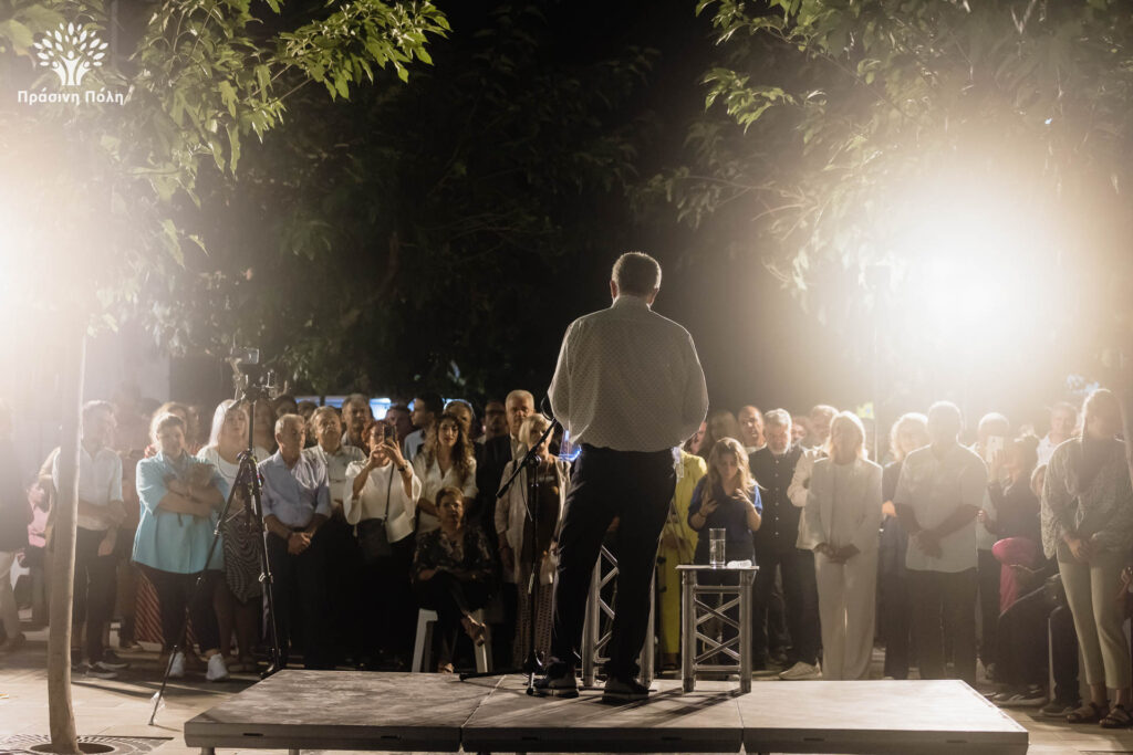 Με μεγάλη επιτυχία και πλήθος υποστηρικτών της Πράσινης Πόλης έλαβε χώρα η κεντρική ομιλία της παράταξης στον πεζόδρομο της οδού Κολοκοτρώνη. Χωρίς γιγαντοοθόνες, πυροτεχνήματα και φασαρία , ο Δημήτρης Πρωτοπαπάς εκφώνησε λόγο μεστό και αυτοδιοικητικό.