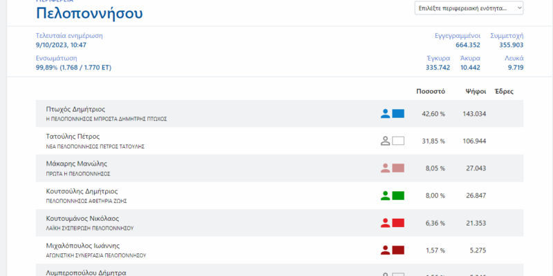 Την άλλη Κυριακή κρίνεται η Περιφέρεια Πελοποννήσου -Προβάδισμα Πτωχού